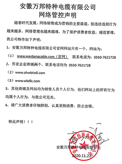 鄭重聲明:安徽萬邦特種電纜有限公司官方網站為:www_wanbangcable_com.hzjiuju123.cn,除此之外無任何子網站或合作網站,其余均為假冒偽劣。電話:0550-7621728 13485756353 地 址:安徽省天長市滁州高新技術產業開發區經四路29號